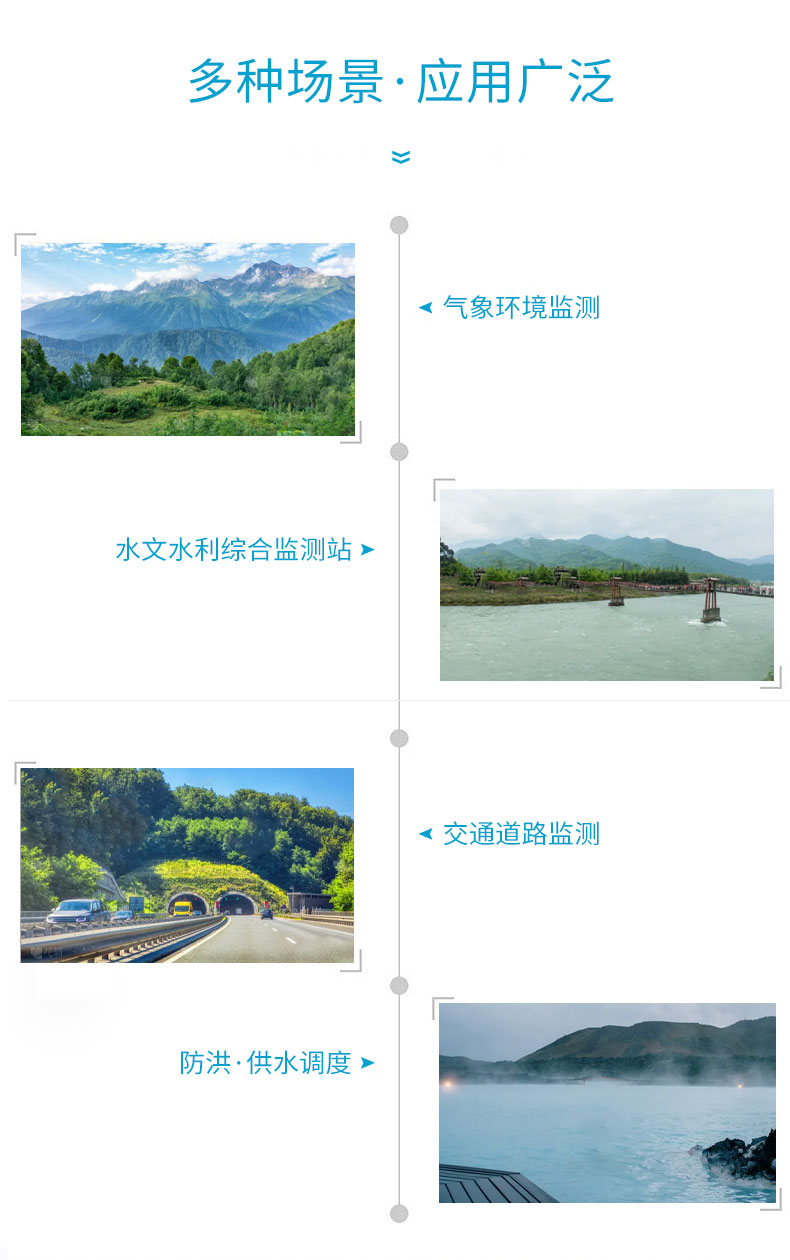 壓電雨量監(jiān)測站可廣泛地應(yīng)用于氣象、防汛、農(nóng)業(yè)、水文水利、環(huán)保、高速公路、機場和港口等領(lǐng)域。既可為氣象臺(站)、水文站、農(nóng)林、國防、野外測報站等有關(guān)部門測量降水量、降水強度、降水時間等參數(shù)提供原始數(shù)據(jù);也可為防洪、供水調(diào)度、電站、水庫水情管理提供有參考價值的實時數(shù)據(jù)。